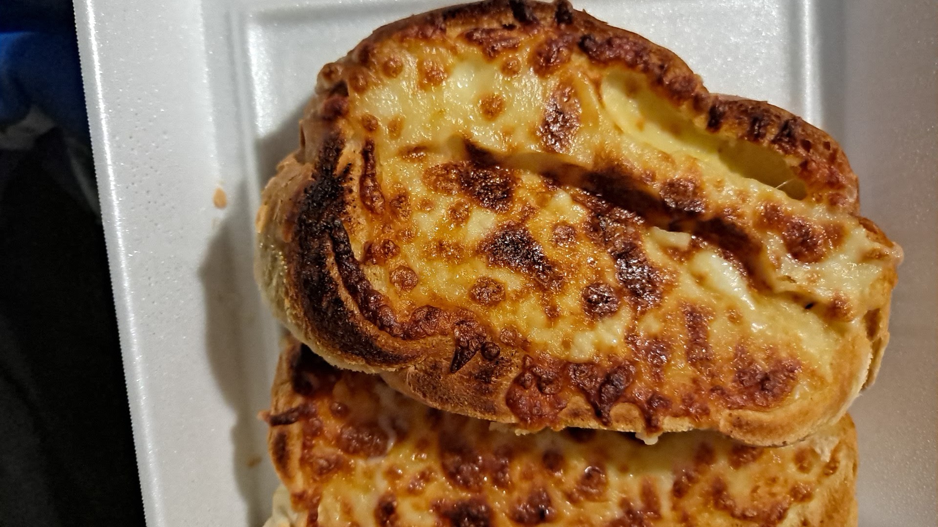The last 3 times I ordered I asked to not over cook the cheese bread...this is what I got(see pictures). Not just 1 time but all 3 times. I ordered the chicken salad and it had the wrong cheese on it and I asked for ranch. What I got is 1 ranch and 1 mystery dressing. It could be blu cheese but it ruined my salad....