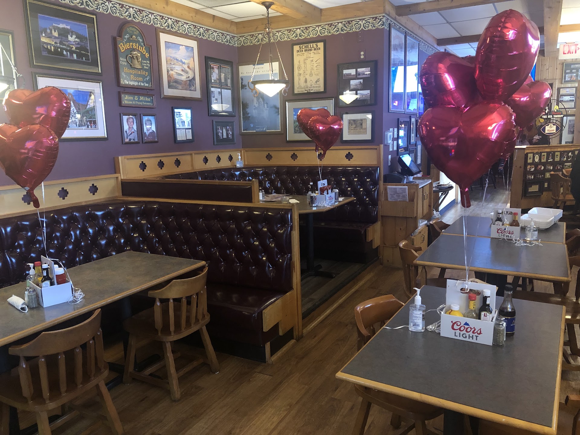 Read moreThe restaurant had balloons up for Valentines, which I thought was very nice. A patron, I’m guessing a regular, let us know we could sit wherever when we walked in which I found charming and funny. Came for lunch on a Saturday, and it seemed they would have benefited from having another server. It seemed like there was only 1, and she was having trouble getting back to checking in on all the tables. She was friendly though. When I enquirer about what kind of soda they had, I was told “we have just about everything”, which I also found amusing. The food was mediocre. We stopped here specifically for their German potato salad which had been recommended to us, and found it underwhelming. My husband really enjoyed the bratwurst and cabbage & gravy. He said the sauerkraut was “just ok”. I had the burger topped with bbq, coleslaw & onion rings. The burger was pretty good, but the “onion rings” were just burnt onions. I also received waffle fries instead of the onion rings I ordered because the waitress hadn’t written our order down, and seemed to have gotten that mixed up. (It’s always annoying when they don’t write down your order and then proceed to get something mixed up!) Just rating the food, I’d give it a 3/5. But because of the friendly atmosphere, friendly staff and friendly patrons, I’d say the whole...