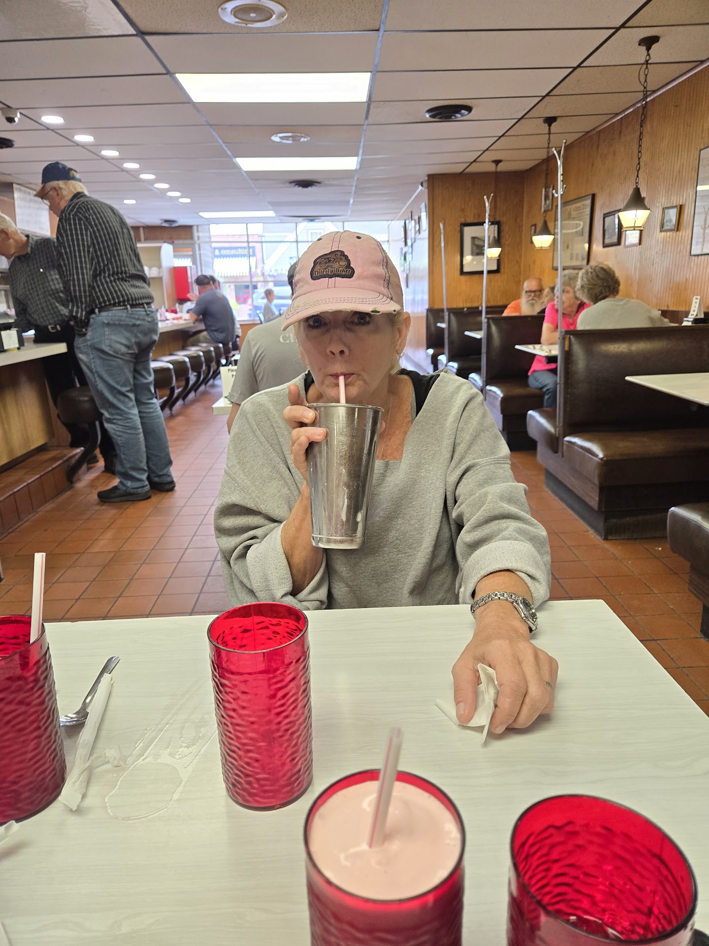 Read moreThis is a slice of Americana. A quaint, historical looking diner in small town America. The food is average greasy spoon, which is exactly what I wanted and expected. The staff, however, ruined the experience. Without so much as a "hello" they told me and my 3 yo daughter to sit anywhere. Half of the tables still had dirty dishes on them, which hurt the allure of the atmosphere. She gave us one menu, and said it was the last one. We passed a large stack of menus when we came in. A terse, "what do you want?" Informed me it was time to order. After she dropped off the food, she was never seen at our table again. Yet, she had no problem visiting the nearby tables multiple times to chat, laugh, and talk to them by name. When I paid her with cash (they don't accept cards or checks) she shoved the change in my hand. I said, "thank you, have a great day." Her reply was a cold glare at me as she walked away without a word. This was my experience on 8-18-2023. Clearly, if you're not a well known local, you're not...