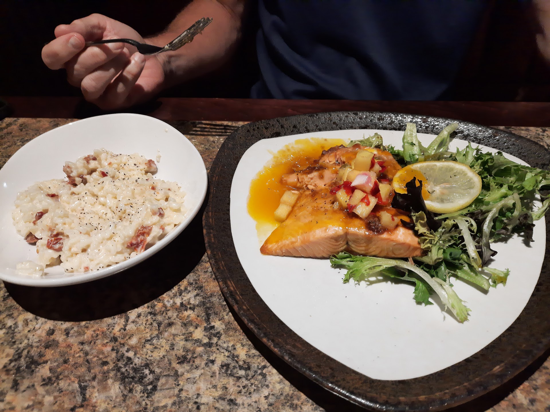 My wife orders a ribeye steak special, and I chose the Beef Short Rib Risotto.