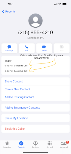 I parked my on the Spot# 01 and waited waited and waited till 6:45, then I called the store at 6:45 (the number is written on their curbside pick up instruction, they didn’t answer), I called at 6:46 (they didn’t answer) I could literally see through the door that 3 employees work in the kitchen, 2 employees are sitting on the sofa, but no one really cared about picking up the call….