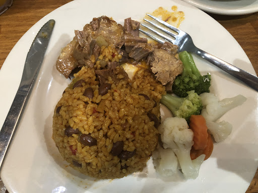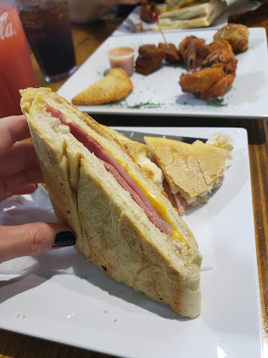My family and I stopped by here after spending some time at a nearby beach. There were about 10 of us meeting for lunch. The cafe is on a corner and very easy to spot from traffic. The parking lot was relatively full and there wasn't a lot of parking as the lot was fairly small. Once you walk in there is a buffet line but it was not a buffet style restaurant. We were seated in an area which leads to another room that had a bar and a small stage for live music. Once seated we got menus quickly and were offered fruit juices which were delicious. The fruit punch was very tropical in flavor. I ordered a salad and ham and cheese sandwich which was more than enough food. My son ordered fried chicken and French fries and my other son ordered a cheeseburger. My mother ordered an appetizer plate with a variety of fried foods. It had fried chicken, fried cheese, beef pastelillos (empanada), corn fritters, and fried pork cubes. Everything tasted really good and came out quickly for the amount of food that was ordered. We were done within an hour eating and paying. For 10 meals, 2 appetizers, and drinks it came out to $150 with tip included. We also bought a variety of candy at the register. We bought some lollipops and a candy called gofio which is a corn based powder candy which is a blast to eat and say the word gofio while eating because it flies everywhere. This spot is good for a quick lunch or a quick snack no matter how many people are...