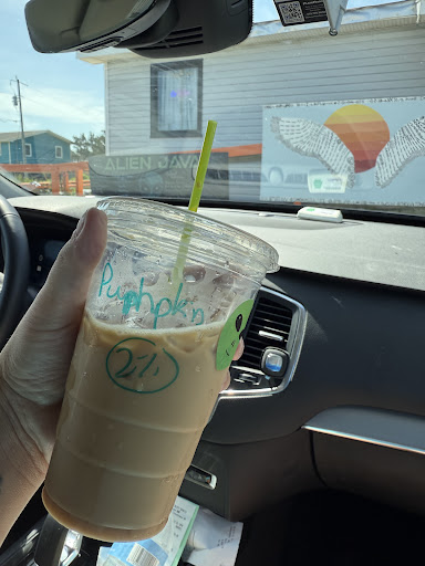 Their customer service is exceptional. . . to the degree that it is not just the best we've had in OBX, but perhaps the best anywhere. My wife, son, and I all left with smiles on our faces, as we sipped on our coffees (milk for our son) covered in alien stickers! The two ladies working the day we went greeted us like old friends, and engaged with us the entire time we were in the store. The only bad part was not discovering this till our last day on the way home!!