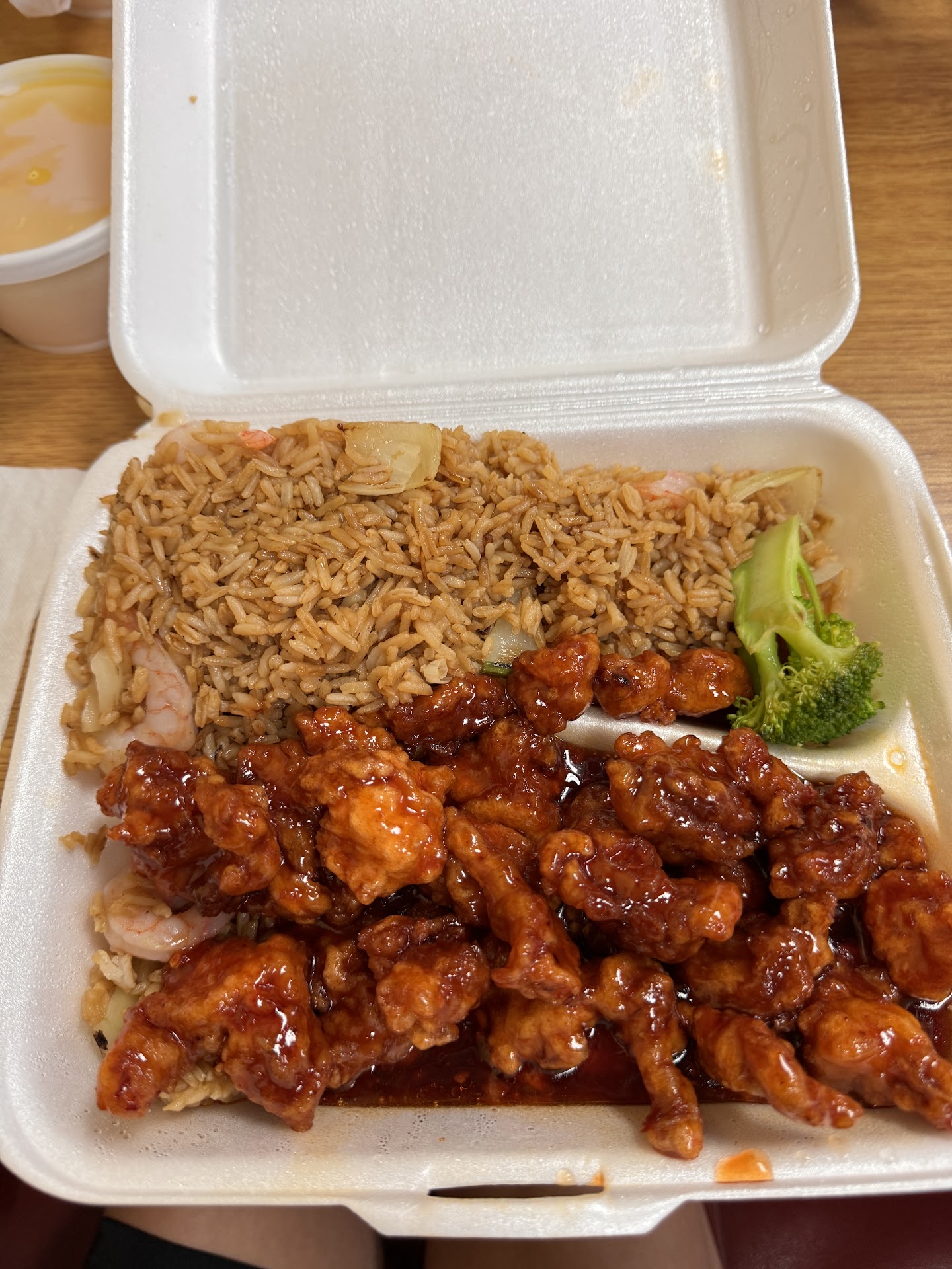 Read moreFirst impression upon walking in, was it felt like the old Chinese restaurant you see in Jackie Chan movies!! It’s quiet and empty. There are only 2 people working there. The lady working the front counter was rude. She primarily stayed behind the counter. I asked her, “do we seat ourselves”. She pointed and said, “yes”. We sat down and waited on service that never came. After watching several customers come in and go straight to the counter, we finally get up and order at the window. We placed our order and paid for everything, got our bottle drinks, and sat down. The food was prepared freshly. It was good. Large portions of food. I won’t be back because of poor and lack of service. I’d rather eat at Pei Wei’s...