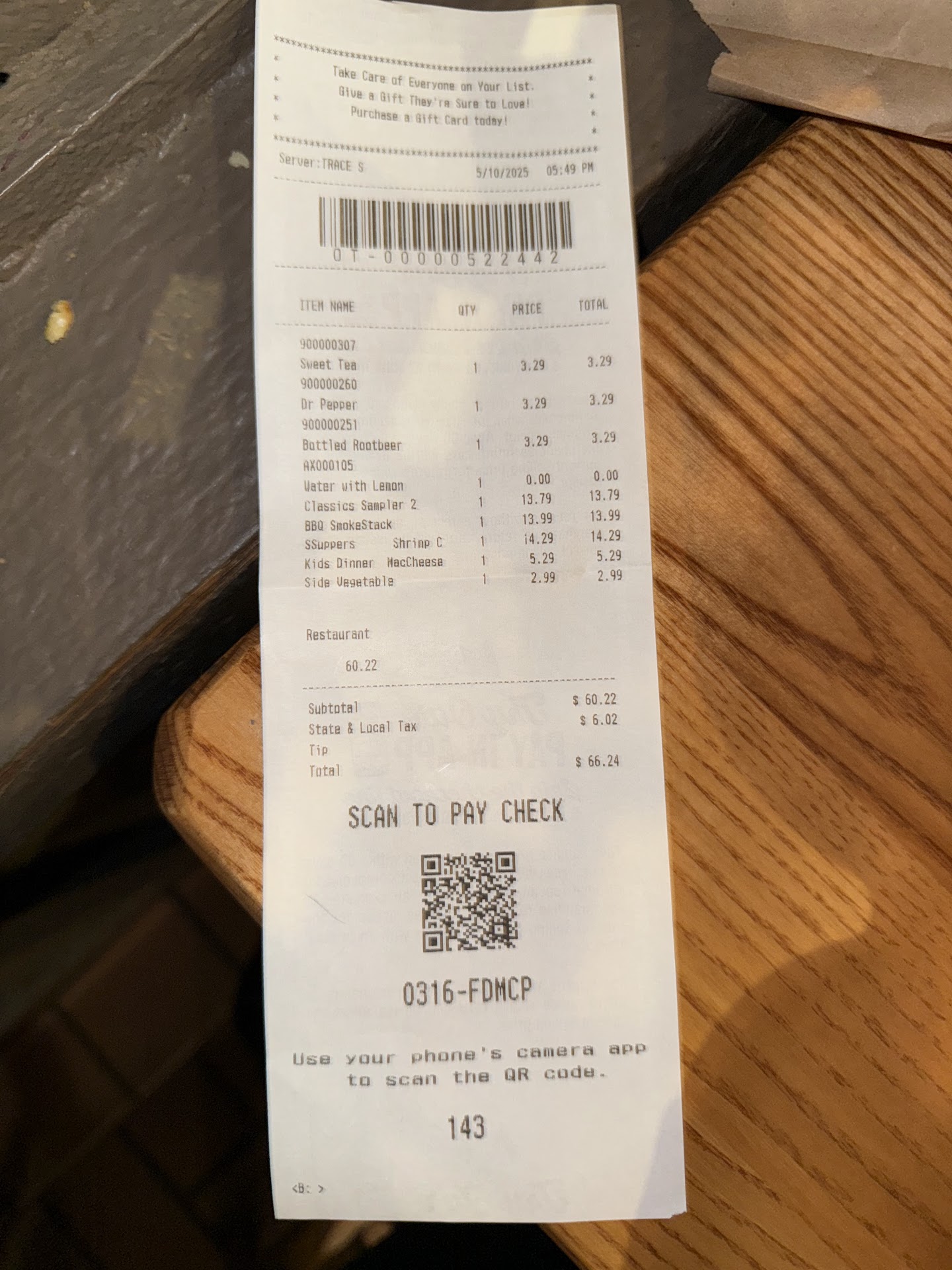 Read moreEDIT: Cracker Barrel responded and again sent a link for me to "give them a chance to fix the problem." Still haven't heard back from the last experience. Not going to waste my time or money with Cracker Barrel anymore. Fool me once,....