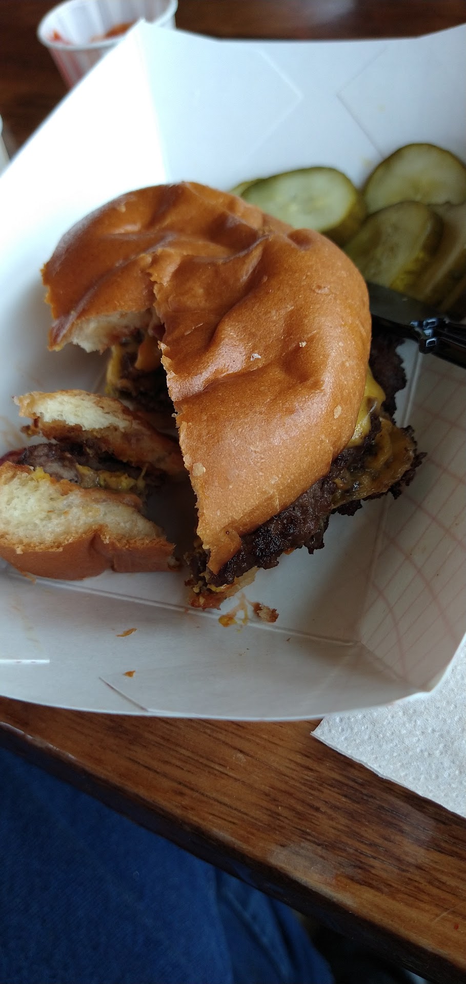 The burgers were great, patties were thin (akin to a diner style burger) and the regular size ones come with 2 patties (which was unexpected). The fries and tots were great, especially dipped in the comeback sauce that comes with the onion rings. The onion rings were good, but a bit heavy on the batter. Next time we'll stick with tots and fries.