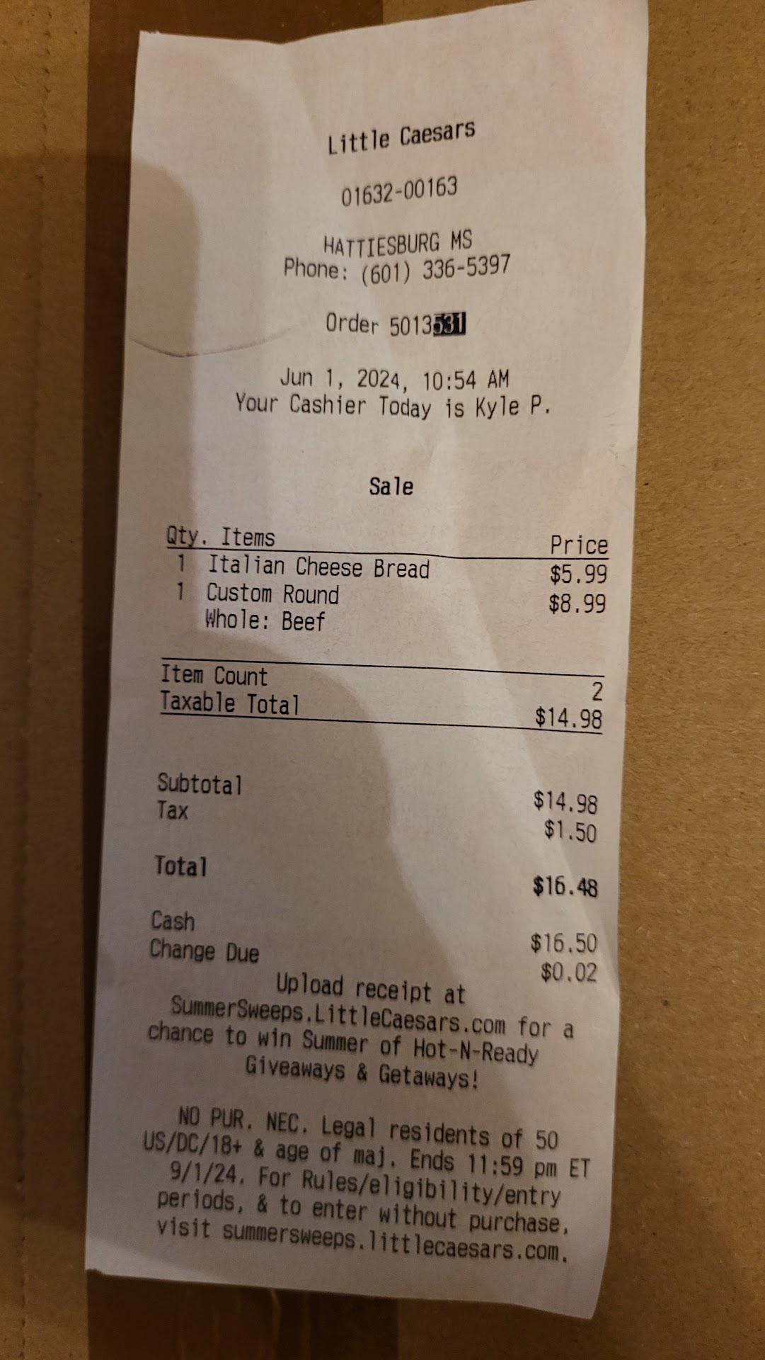 Read moreTo my shame, updated 02/09/23. I should have stayed away. Same people cooking there. . .One of the worst Little Caesars Pizzas I've ever, every had!! I've had pizza from this location many, many, many times and they have always been good. I have also had Little Caesars Pizza from the coast to Jackson and points in between. They've always been moist, tender and cooked just right. Not today on Hardy Street in Hattiesburg. It was dry and over cooked with the pepperoni being blistered and crispy in places. The only, and I mean the only place there was any sauce was in maybe a 1 inch ring around the outside. There was none, absolutely none in any other place on the pizza. I would also add that one of the male employees had parked their little silver car in the handicap parking space (I know as I said something about it. . . ) Update: I looked at the pizza today and refused it. . . Lady acted like she was going to get me another pizza. She went into the rear, cut up and boxed some pizzas then brought me the same one back!! The toppings were again lacking, esp., sauce. There were a couple of slices that were missing any toppings on about 40-50% and this area was simply dried out crust. Pepperoni was over cooked. . . Maybe I'll learn my lesson this time and stick with...