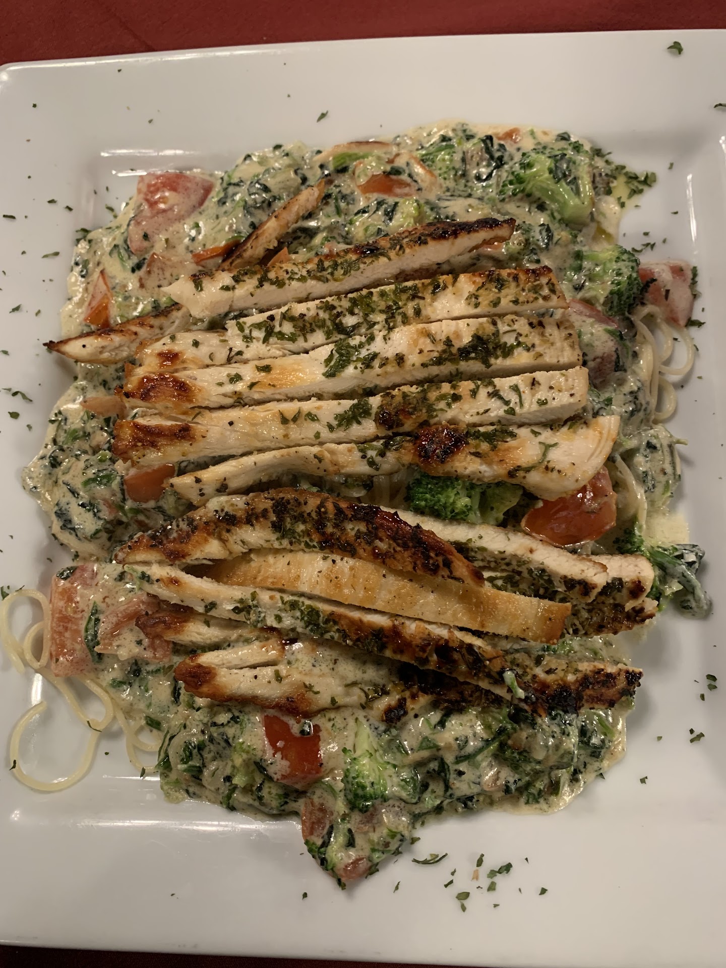 Fed 4 adults for $100 plus gratuity on a Sunday afternoon, which included 2 appetizers. It was a birthday dinner for my daughter. Everyone's food was delicious. The spaghetti sauce was a little sweet, which I'm not a fan of, but it wasn't so sweet as to drown out the delicious sweet tea. It was done very well, and I would have eaten it again if there had been left-overs. The portion sizes were more than adequate requiring my wife and daughter to request to-go boxes. The calamari was lightly breaded and cooked to perfection. It was not overly chewy or "rubbery" like is often found at chain restaurants. The stuffed mushroom appetizer stole the show! The stuffed mushrooms are smothered in their spinach-artichoke dip, and was a creamy, warm dish of pure heaven. One would savor this treat even if they disliked spinach, artichokes, or mushrooms! It's THAT good! The sauce made the perfect dip for the hot, soft pretzel-like bread that was complimentary - what little survived being devoured with the butter! My big disappointment was that no steak was available. I really wanted to try one of their ribeye marsala dishes, but was told it was out of stock due to shortage. I suppose it saved me $15 plus the tax by switching to the spaghetti and meat sauce, and I left quite full. The service was excellent. Our server had a great attitude and personality and was knowledgeable about the menu and the local history. Most servers are college students or college age, as Hattiesburg is a college town. That doesn't mean service is second rate. Parking was at a premium, and we suspected some of their parking may have been pirated by the nearby hotel overflow. The food and service was commensurate with fine dining fare minus the crystal, white tablecloths, and extra fancy silverware. We will be back as often as possible being visitors from...