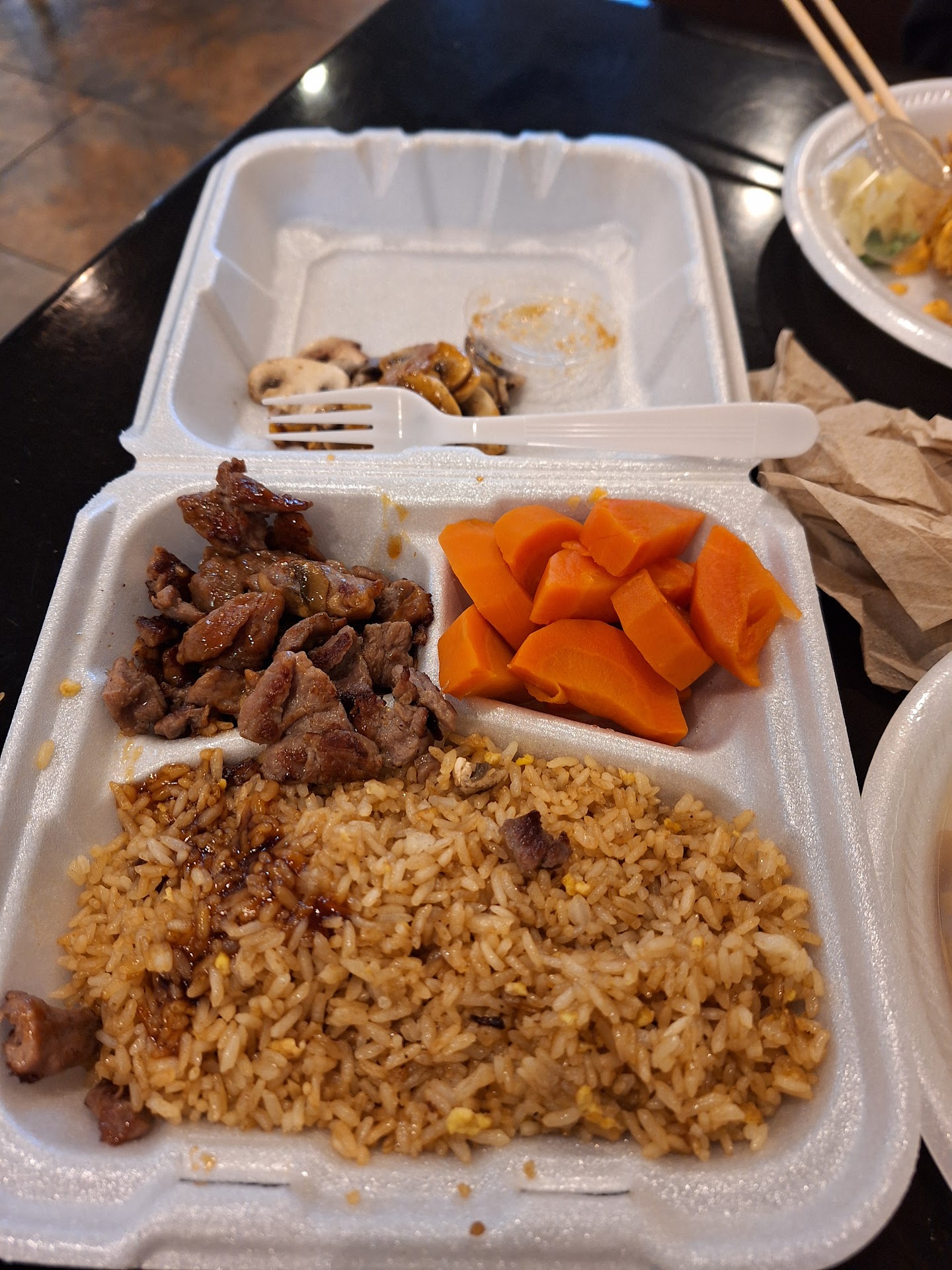 Read moreMenu uploaded to pictures. After eating and comparing food quality to others I've given 4 instead of 3 stars. Philly roll isn't smoked, but does have larger pieces of fish than most. Haven't had a chance to really get an idea of service quality but that's a thing that changes with employees, and unless it's really bad usually not going to impact my liking the food, as long as it doesn't slow down the time it takes to get the food. Everything seemed adequate, nothing really seemed especially good or bad except the selection which was larger than most quick casual hibachi places. If you are with a group or in a hurry it's a good choice as most will find something to eat and my walk in chicken steak hibachi with tempura roll took about 10 minutes. If after trying more i find anything especially good or bad I'll...
