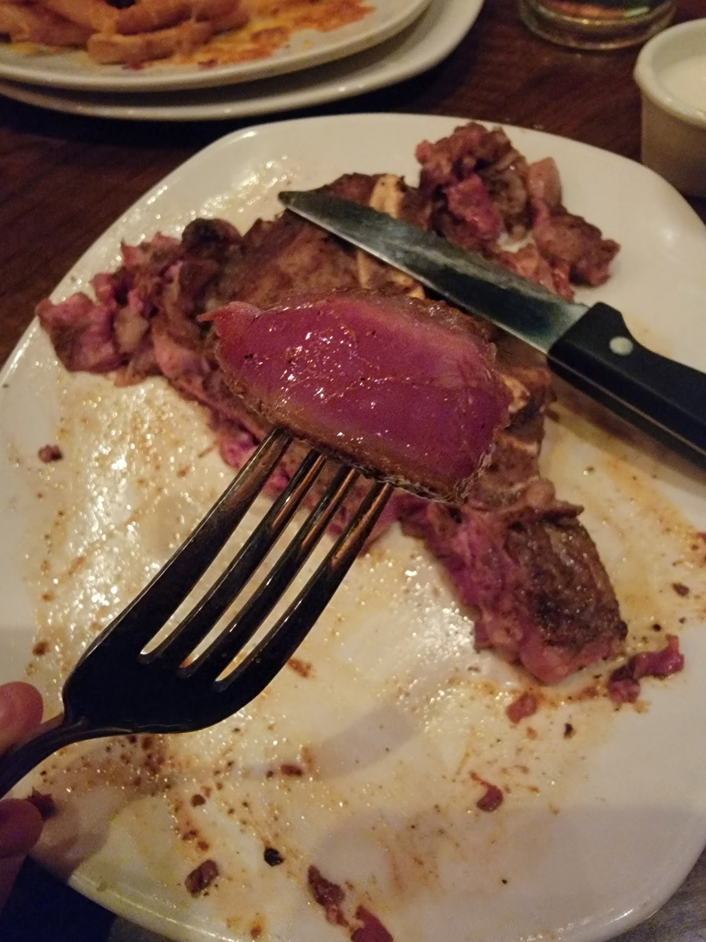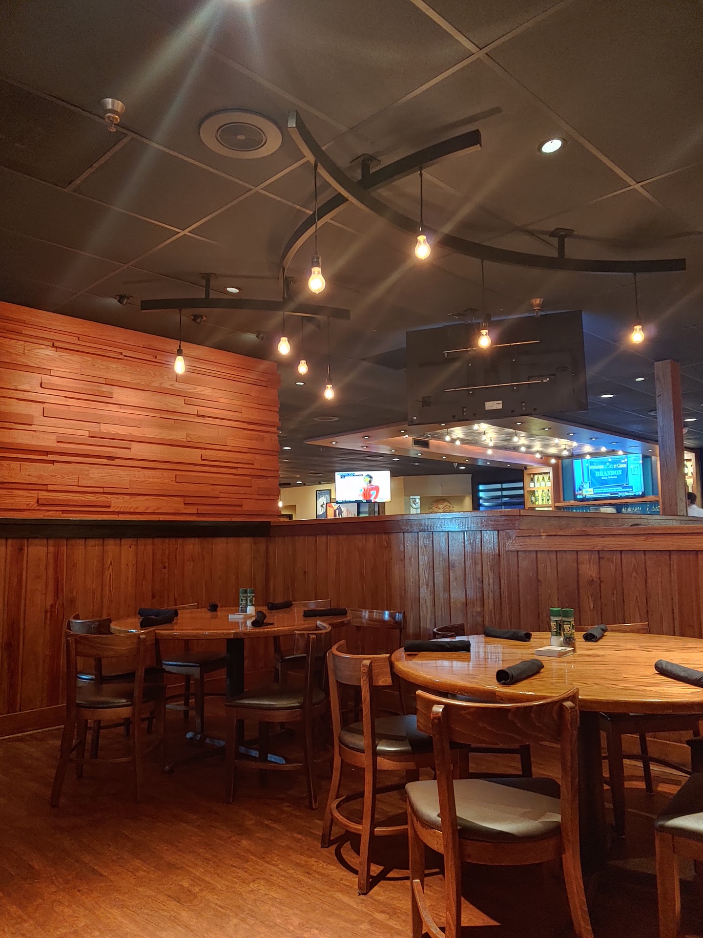 Chicken wings, a couple of different kinds, were dried out. We waited as we needed extra dipping sauce as one per plate would not make a full table satisfied. I ordered a medium steak, a hot pink center, which was much more on the Rare, almost raw side. It would have taken forever to wait for my waitress, send it back, and have it returned from the grill; everyone else in my party would have been finished by then—scraps for my dog. I was disappointed with visiting this location with my family; you could have done better.