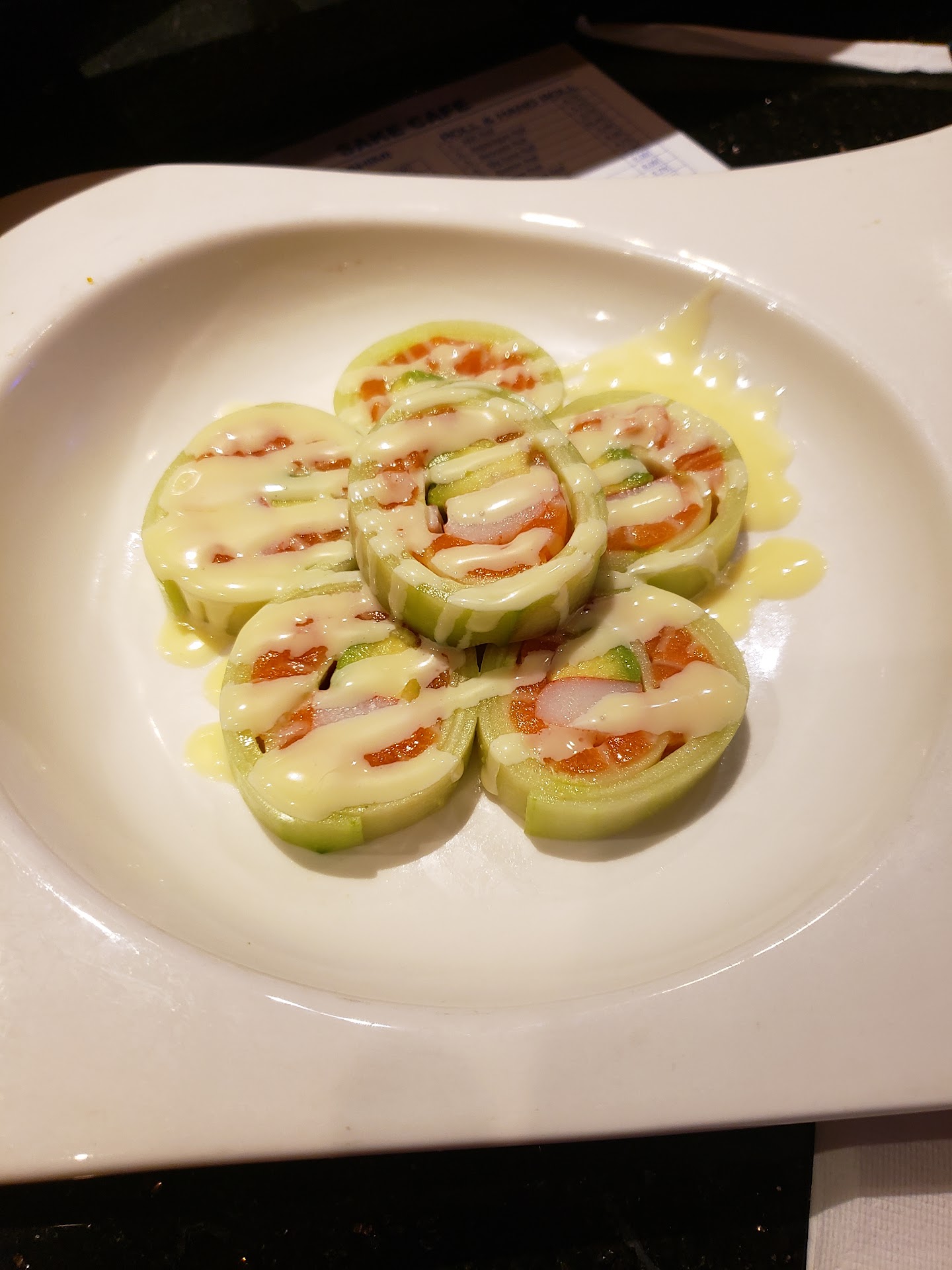Saved the best for last, it’s sushi time! Who cares about the looks right?! Wrong! I was sad eyes when my saw my soft shell crab. Why? Because it was sad looking. For all you tempura sushi lovers, the best part is the end piece where all the meat is hanging out and the portion of the meat is bigger than the sushi itself! Except my end piece was small like Katt Williams, mini Twix, mini skittles, Mini Me from Austin Powers. (Sigh) The best soft shell crab I had ever was at Sakuras.