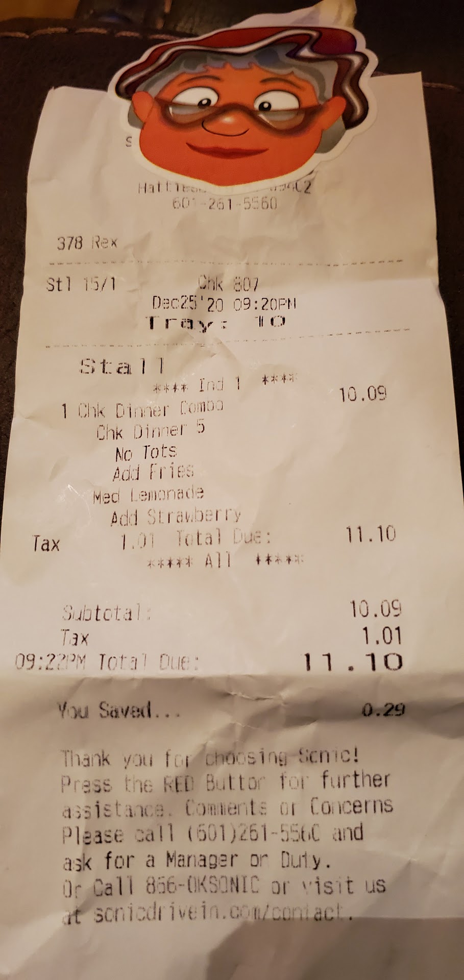 Read moreI frequent this place quite often. Usually the car hops are very sweet, until this visit. First I want to say that Google has this particular sonic being open until midnight. So I was surprised when I pulled up at 15 minutes after 10pm and the lady who took my order stated that the kitchen was closed and they would not make a grilled cheese sandwich. I showed them where it said they were open until midnight and the girl who delivered my order said that Google was wrong and that they close at 11. So i placed my order, which included a milk shake that the sign on the stall next to me clearly stated was half off during certain hours of the night. So when I asked them why I had been charged full price, the girl, who was training another girl, stated that they would not honor that because it was not her fault that they were not allowed to change the signs on the menus even though the promotion had ended almost a week before. The lady who took my order stated it had ended the day before. So I paid full price for my half priced milk shake which was halfway melted when I received it. I went back the next day to order a new Philly cheesesteak sandwich Coney thing that they had been advertising and to my surprise the food that they brought out to me was absolutely disgusting! It was a hot dog bun with a big glob of mayo and a glob of squeezy cheese and it was soggy and terrible. I didn't go back because I did not have time because I was in a hurry to...