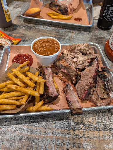 Read moreRead the reviews and I saw they were mixed, so I wanted to try it myself. We had the 3 meat platter choosing ribs, pulled pork, and brisket, along with 2 sides and drinks. We ordered immediately and the food arrived within a few minutes. I love barbecue, and Stricks did not disappoint. The ribs were tender but not overcooked, very flavorful and didn't require sauce, though I did try some. The brisket was also very flavorful, with just enough fat to add some flavor, it had obviously been trimmed correctly. Melted in your mouth. The pulled pork was also very good, tender yet firm, not soupy or greasy like you often find. We tried the strawberry lemonade, but it was very sweet, our only miss of the meal. Sauces were good, but I didn't use much as it really wasn't needed. Will definitely give it another visit in the future as the meal was $30.00 total before tip. The waitress was attentive and thought to bring an extra plate for us to share. The fries were seasoned and served hot, the baked beans were good too, but I...