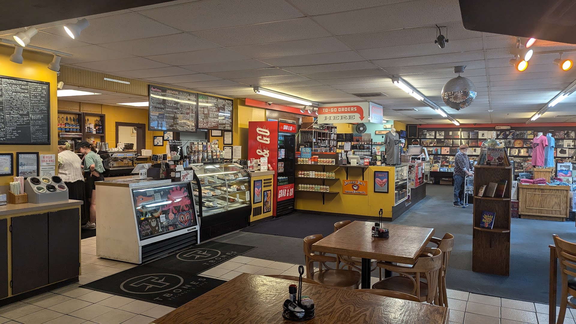 Very neat and I loved the idea to have a cafe with food that looked amazing inside a music store to help keep the music store open as my generation were the last to experience the days when I grew up as a teenager and looked forward to saving up my allowance to purchase my HUGE music collection (that I still PROUDLY have) collected all from music stores! However, as a truck driver from Pennsylvania hearing and learning about the history between Afroman and T-Bones Records and Afroman being the ONLY reason I heard of T-Bones, I was VERY disappointed when I went out of the way in a commercial truck and had a hard time finding a place to park it just to stop and show my support to a local record store that is still in business selling physical copies of music and see AT LEAST ONE PICTURE (MAYBE even with a autograph) on the wall of Afroman at T-Bones Records from the early days and I even thot I may have been at the wrong place! I was VERY surprised not to see ANYTHING!! Didn't even have a Afroman cd that I WOULD have purchased to add to my special even prouder personal "Golden Record Collection" just to say I got it from the original store that sold his music before anyone else did, but saw other cd's that I wouldn't of and don't have personally in MY collection!! I understand that was a long time ago and when I confirmed to the man at the counter that knew something was awkward about me that I stopped in because I heard the place was famous and I wanted to check it out, he was very kind but seemed bothered or had a flashback like maybe he was there at a time when the place may have been so busy he couldn't wait to go home or maybe he was continuously bothered by fans or media at the time as it was happening and thot the days were over that someone like me would be there or maybe I just surprised or caught him off guard. I am Someone that enjoys history and seeing and learning about where the seed was planted for the roots of something as it is and that it did to take off for a nobody as they say. I enjoy hearing about and seeing where and how it happened to others that were just a unknown person the same as I still am! I purchased a hat that I am proud to know where it came from that I showed my support to and later learned on my receipt the man at the counter gave me a discount on and he gave me 2 stickers that I'm giving one to my friend that is responsible for me hearing the story and learning about T-Bones Records & Afroman!! I would have gave 5 stars, but NOT 1 piece of history disappointed me and was the only thing I wanted to see with my own eyes in person from the original place where it started from. Congratulations on 25 years in business and Best Wishes from a truck driver from PA that stopped by as I was passing...