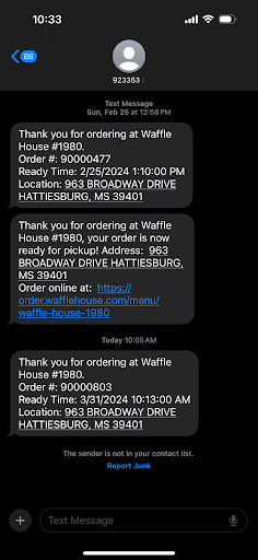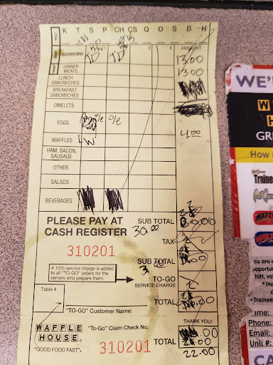Read moreDisappointed is what I am at this point. The worst decision I could have made this morning was to order from this Waffle House. I order cheese steak omelet, supposed to have been Texas toast and grits. The first disappointment was I received regular toast instead of the Texas toast and to top it off the regular toast was hard and dry. The waiter who was on duty the morning of 09/20/2019, around appropriately 09:50 am was the ruddiest person I have ever met. I think that the option of including a gratuity in the total for to-go orders should be deleted because every person doesn't deserve a tip. I have called the store several times to complain of this matter but all the sudden the phone line is down.