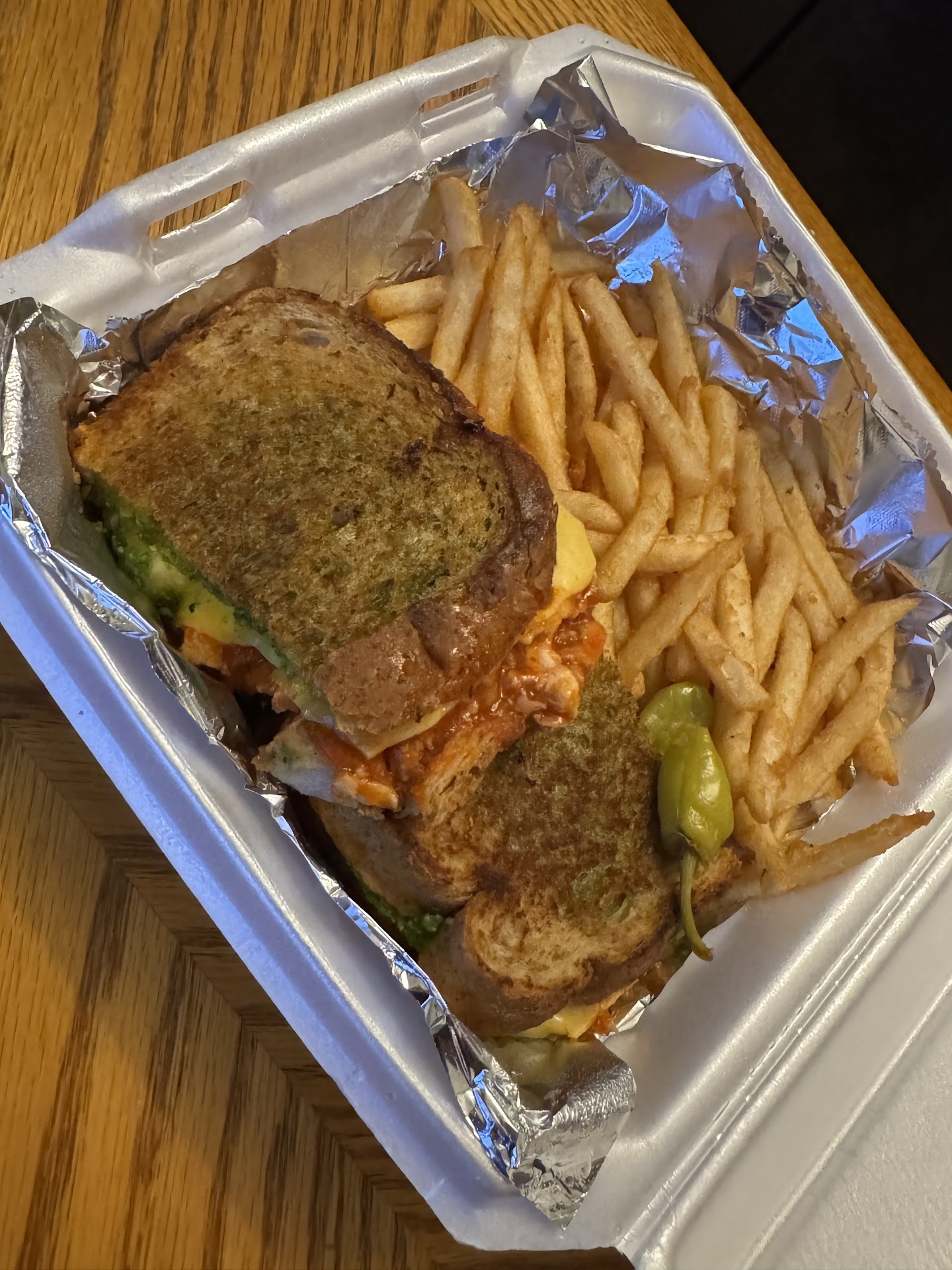 Ā Ā Ā Read morePlaced an order online for a Cajun Chicken Grilled Cheese, Chips and Queso, their Corned Beef and Cabbage Soup of the Week, and some Donut Holes for dessert. Everything was delicious, hot, and fresh. The lady at the counter was very nice and made sure we had everything we needed before my husband left with the order. Great little place to have in town and weāll definitely be...