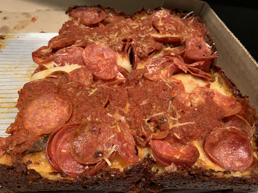 But this Detroit style, and specifically from Crust...it's just damn good. the bread holds up and has great flavor. I have had a 1946, a 1946 add pepperoni and hot honey, a detroit burratta pepperoni, hot honey and basilwith detroit sauce and brick cheese, a south philly, and a santorini, and every one was as good as the next. and unlike a thin pizza, this crust can hold up to the toppings on the more loaded pizzas...the cheese and bread on the edge of the pie has that crusty pan toasted amazingness, and the ingredients are top notch.