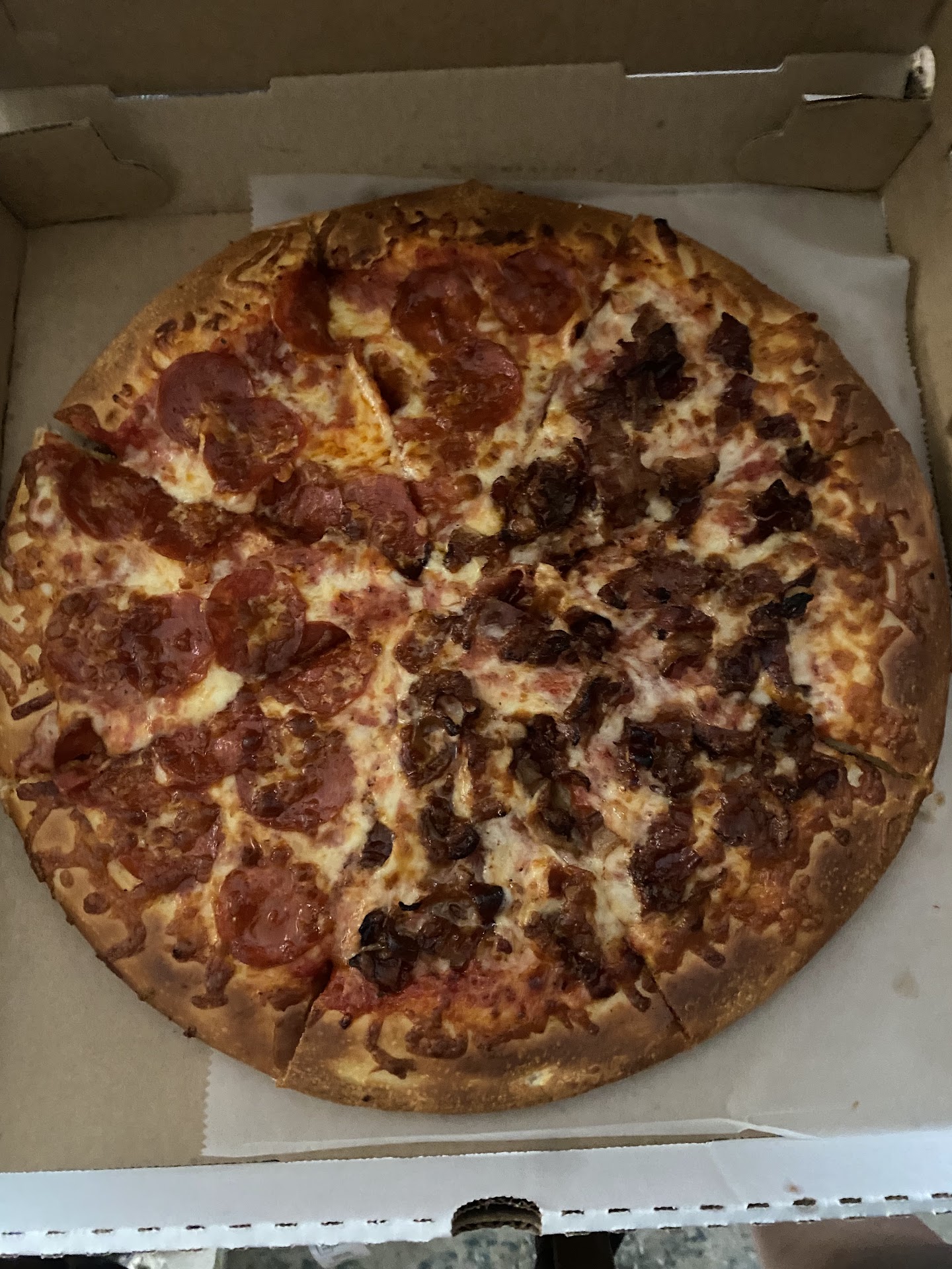 Ā Ā Ā Read moreThe pizza was good, not exceptional but certainly not bad. Tasty and I enjoyed it. Gave the order. 20 min wait till for pick up. I got large which was very small. The owners must be very concerned about Covid still because you canāt get close to the any of the employees and the inside of the resurgent has been stripped to absolute bare bones so your not going to want to eat there. Customer service was direct and basic, not friendly...