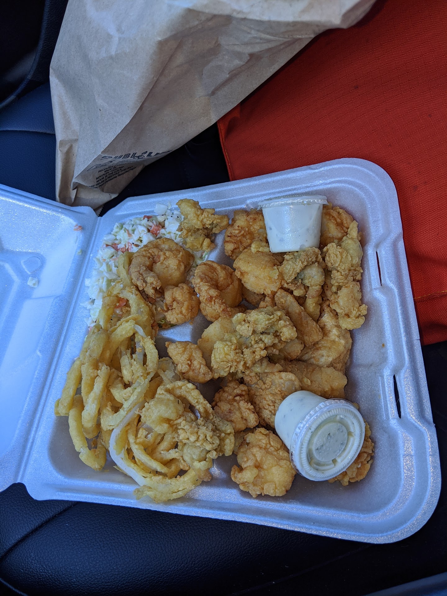 Read moreImmediately when entering the restaurant I was concerned by the strong smell of rotten fish. I expected it to smell like fish as they serve seafood, but it smelled more like fish that had been sitting in the heat for too long. We got our food in a reasonable amount of time. It was a seafood platter that my husband and I split. The onion rings on the platter tasted like pure grease and I'm not even sure if they contained onions or just batter. The rest of the fried seafood was flavorless (battered scallops, haddock, clam strips and shrimp). The service was below average; our server approached our table while she was in the middle of a personal call on her cell phone. This was during the peak of the COVID pandemic in 2021 and she was not wearing her mask (I'm updating this review in 2022 to clarify that the food did in fact make my husband and I sick). She didn't even put down her phone when she handed us our food; she just laid it on her shoulder and continued on with her personal conversation. The environment was very unwelcoming; as soon as we entered the restaurant we weren't even greeted. There was just some old man behind the counter giving us dagger eyes. There were flies buzzing around and dead flies on the windowsill next to our table. When we got home after eating some of the platter which didn't taste much like anything, we got explosive diarrhea. I will not be...