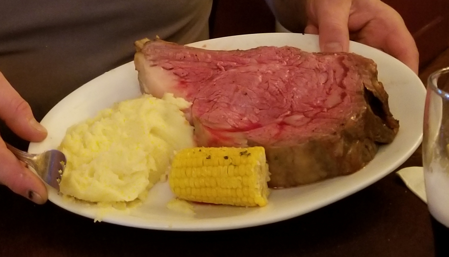Needless to say, all of our dinners were cold by the time we started eating. Two of us did not receive the correct sides. I ordered the steak tips they were horrible. Two people ordered the prime rib. It was way too fatty. They took most home for their dogs. (The people that ordered pasta dinners did enjoy their meals.)