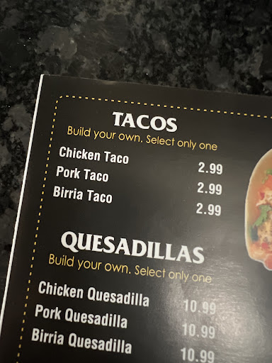 The first time I came here I enjoyed my meal. Got birria tacos and wings for myself. Didn’t pay for the bill as we went for Mother’s Day so I was unaware of pricing. Second time eating here, I ordered 3 birria tacos for take out as advertised as $2.99 on the take out menu. Thinking this is a great deal, right!? Get there to pick up my order, hand my card over and I was charged $19.75. I mentioned this to the two men ringing me up. One assists me and asks “did you order guac and rice?” I said no. Just the three tacos which show as $2.99 on the menu. He says “oh yeah, sorry we charge more for birria tacos. The menu should be more clear”. He didn’t actually tell me the price though. I walk out with the 3 tacos for $20 because I was starving already, my card was already charged and I didn’t want to figure out other food accommodations for the night. But told myself I would call again the next day to ask how much birria tacos are. Next day comes, I call, a woman answers the phone and she tells me they’re $4. Ok… the math still isn’t mathing. She tells me there’s not much to do to help but will let the manager know. She didn’t ask for my contact info so I’m just taking this as a loss. Definitely a lesson for me and I will never order from this place ever again based on this experience alone. Which is a shame because I actually really like...