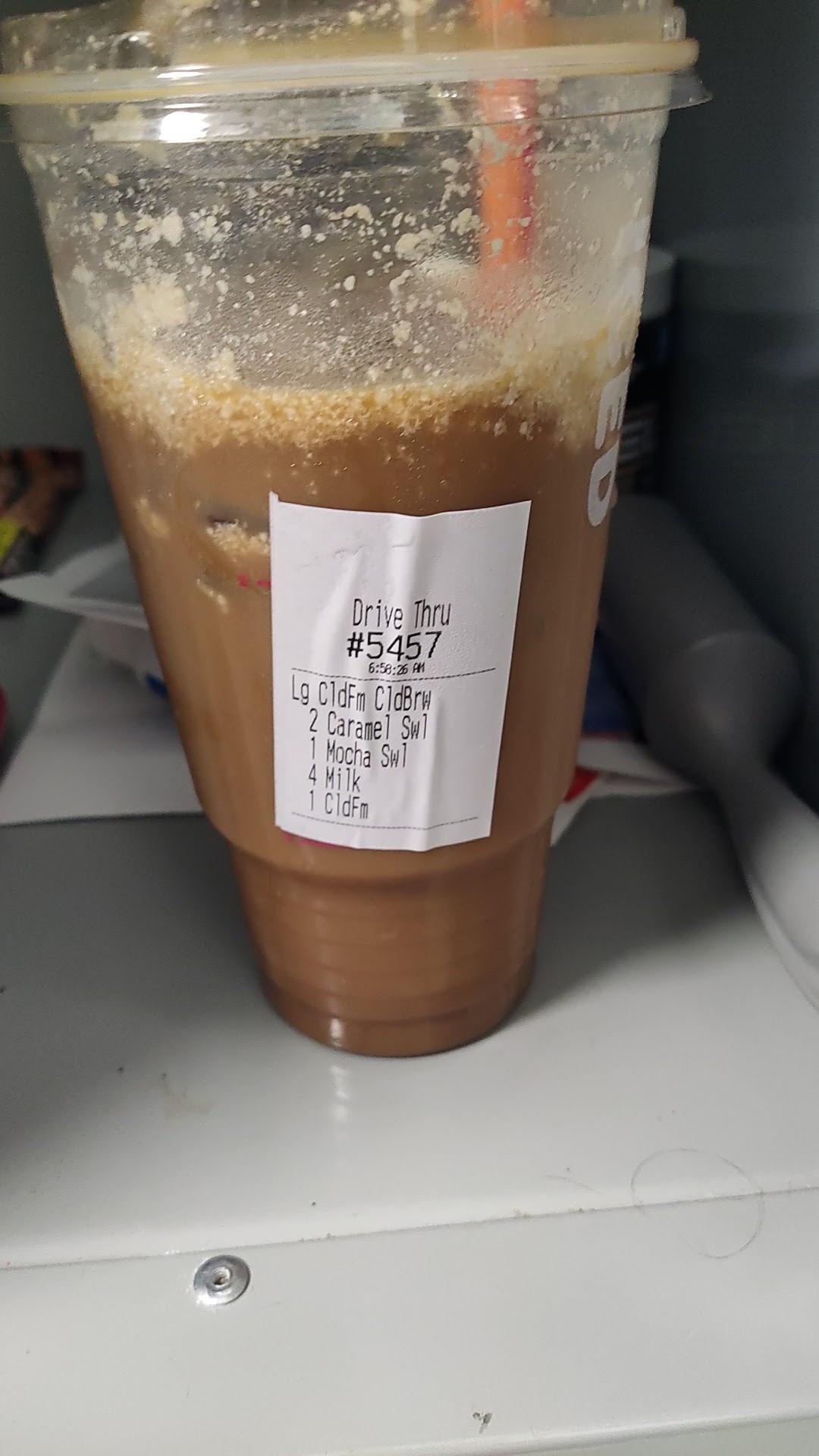 Read moreSo I'm new to the area and figured I'd go to the closest dunks why not? What can possibly go wrong 𤣠let's see the girl with braces who is Caucasian I'll never forget because she stole my cars ash tray I gave to her full of change (which I did feel bad for usually I tip but was struggling) she took my ashtray never gave it back last time I was there mind you it's clean I don't smoke in my car using it today I ordered 2 ice coffees and one hot all large I wasn't given a receipt at the 1st window which I can careless for but when you give me an attitude questioning my 2nd coffee I ordered asking for a receipt it's understandable but the guy at the mic had more customer service and common courtesy I felt like I was getting customer service in roxbury massachusetts from her specifically everytime I go there which is why I stopped tipping nvm going to that dunkins unless I have to it's highly unprofessional my ash tray alone for my car is 5$ because my car was discontinued so now I have to hunt for that and deal with an angry whiney little girl who hates her job or her life but it's not my problem if you don't like your job or your life go change it no customer should be dealing with her anger management problems personally think she needs counseling aswell I was a manager at a hotel and I fire at will for that type of behavior definitely not spending 20$ there again for this...