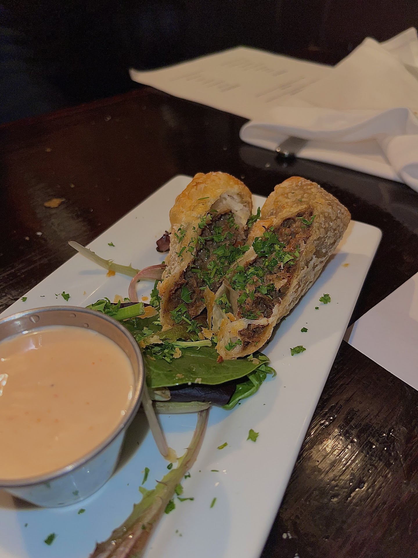 The menu is small, which is my personal preference, but still has options for pretty much everyone. I can speak for the Steakbomb eggrolls, seafood ravioli, short ribs and filet mignon, they were all absolutely fantastic! I could eat the Yukon mashed potatoes and fried onions by themselves by the plateful and be totally happy with it. Everything was cooked perfectly and left nothing to be desired.