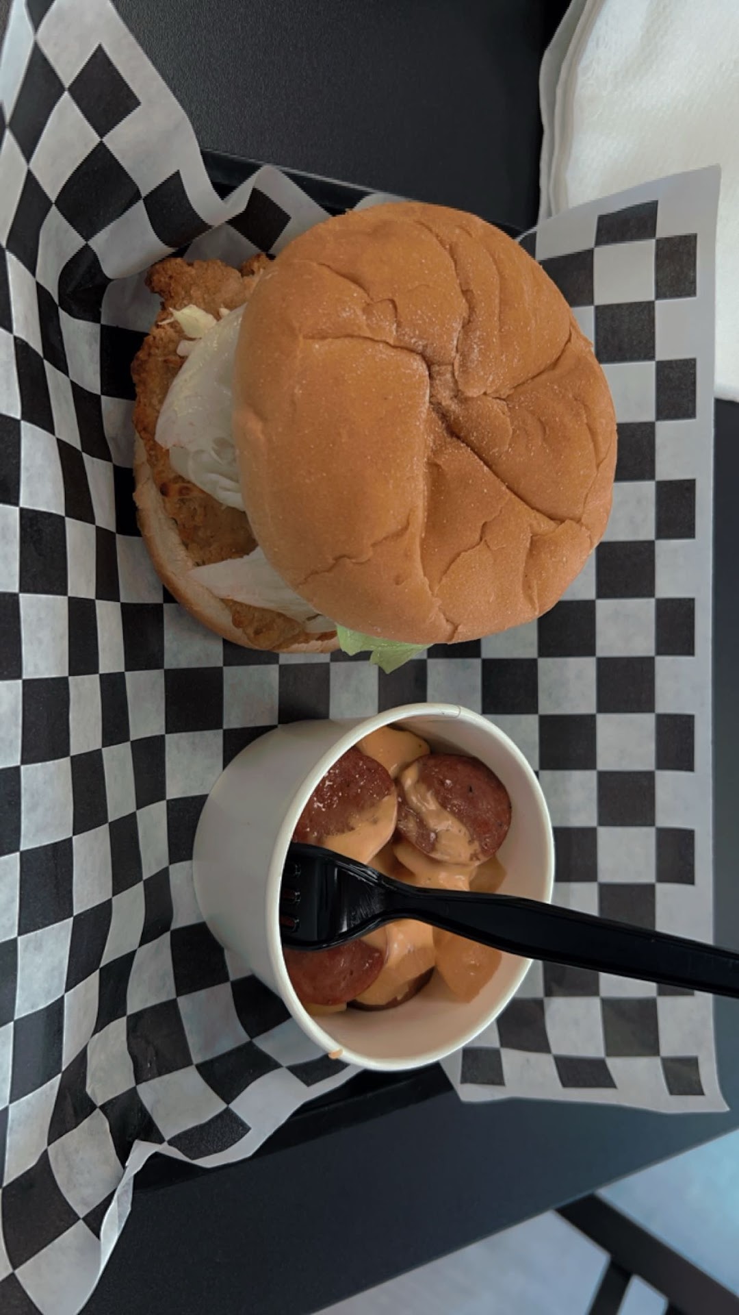 Read moreGot a regular chicken filet sandwhich and a âChristmasâ side (kelbasa, pineapple, and cheddar), total was $17.66. I was a bit wary of the price of the sandwhich at first but given the portion size of the filet itâs definitely worth it. Plenty of space and tables in the place. The owner was very respectful and made sure that I felt comfortable. The sandwhich was great, and very filling. I wish there was a picture of the âChristmasâ side because I had honestly no idea what to expect and while I got what it said, Iâm a visual person and it definitely sounded better in my head đ (it was still good, just not something I would usually order). Overall everything was great and thereâs a huge menu variety of hot dogs and sandwhiches, I will definitely come back to try some of the...