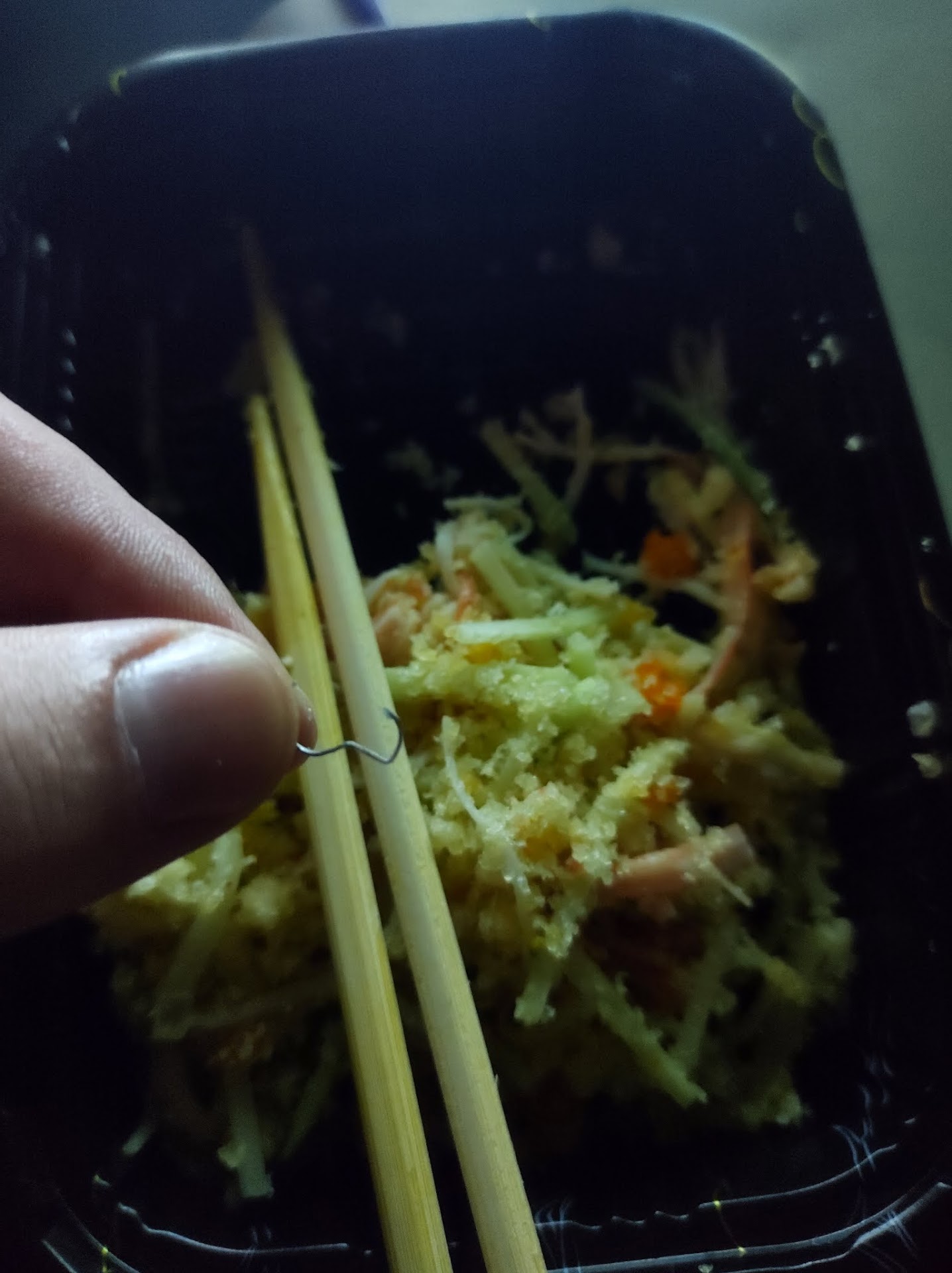 I ordered delivery tonight, November 20th, from O Yummy. After I had started eating my dinner, something stabbed straight into my gum, and drew blood. I fished it out from my mouth, and it was a staple. There was no way it could have gotten into my food from the delivery bag because the case was still closed when a placed the bag aside.