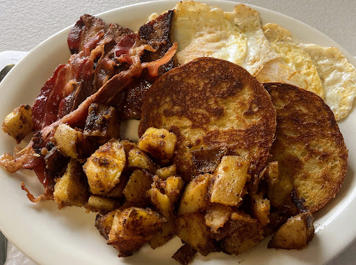 Also, gross chunks of dog food like meat from, what I can only guess was from a can, is what they consider steak tips. Home fries are literally room temperature. I had to wait extra time for my food to cool off, I guess. Also, a cat threw up on my biscuits and gravy.