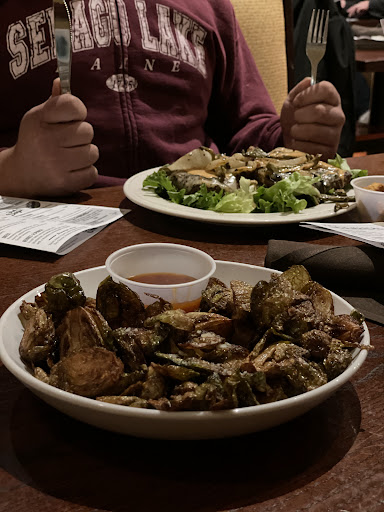 Read moreWe really enjoyed our food, as you can clearly see from the “before and after” pics. I got the fried Brussels sprouts plus a side of the beer cheese because based on the menu, it seemed like a must. Pro tip: drizzle a bit of the Thai chili sauce into the beer cheese for the best dipping flavor experience. Hubby ordered the wangs and while he ate every last bit of it he did mention they were kinda dry. The boy ordered a double burger (hold the bun) with the ghost pepper cheese because ghost pepper cheese on a burger sounds AMAZING and he was thrilled to every last bite as fast as humanly possible. Our server was very friendly and made sure to keep a pitcher of water at our table. Solid move! Our food came out fast and hot and the bill was totally reasonable (I’m a NYC transplant). Only bit of criticism would be the noise level in the dining room, which I appreciated was separate from the bar, but the music was still too loud to have a conversation without hollering over it AND the other patrons trying to do the same. Overall a great experience and will be coming back for drinks and bites at the bar but probably not first choice...