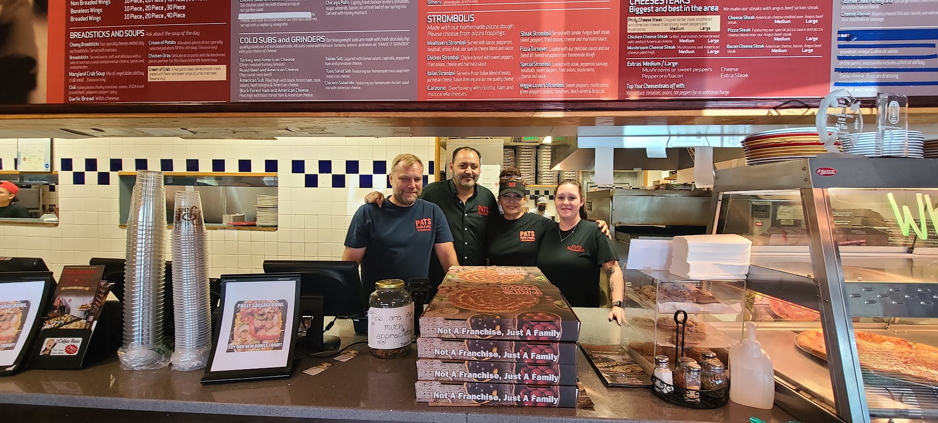 I order from here all of the time. It is a reliable food experience. I know that what I order is what is going to arrive at my door. My current favorite menu items are the tomato soup and grilled cheese (I add a bunch of changes to the sandwich, because I have weird taste, and they let me eat what I want, which I appreciate tremendously), and I also now really love the cauliflower crust. I don't know exactly how they did it, but it was a great substitute for the real thing. My husband and I always say that "all roads lead to Pat's" when we don't know what we are in the mood for, because they do everything, and surprisingly well. The promised time of delivery seems long, but they are usually faster than that (under promise, over deliver). The food is always hot, they always think of the little things that you may want like napkins or condiments, the delivery drivers are always polite and quick, and I really love their very diverse menu. This place knows the formula for great food done right. I am just so happy that they hop the bridge for us. The North East one also delivers to us, but the HdG one is better, imo. Not that NE is bad, just not as good. Thanks for the years of really stellar food and service! *BTW, fried onions seem like a small thing, but your cooks always make them perfectly caramelized, and they season them, which really makes a difference. The best cheesesteaks always have great fried...
