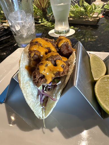 Read moreThis is a cool little spot, and a welcome addition to the offerings in this beach resort area. I travel far and frequently, so I can attest to the fact that the seasonings on the black Agua chile shrimp are as they claim… Yucatán traditional with a modern flare. Pork and chicken tacos were also delicious. Fresh corn tortillas are always the best. It is a newer place, however, and 3 stars is my top score due to some apparent growing pains… for example: Bottled beer was not cool but not cold. Easily fixed with an ice bucket, but that shouldn’t happen. Agua shrimp Is a ceviche, we did request raw… However, it needed a little more time in the acid to firm up a tiny bit. Also, if there were grilled avocados, radishes and microgreens as stated on the menu, I didn’t find them. Same for the passionfruit on the house ceviche. Also, house ceviche menu price is $22, but it rang up at $25 on the receipt. We each ordered a pork and a chicken taco. They came plated with 2 chicken on one plate and two pork on the other. Not thrilled to have to fix this ourselves. Chicken taco could have been a little more full. Cocktail napkin instead of dinner size.