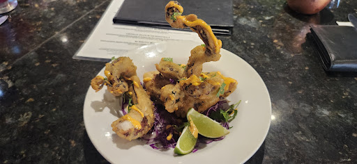 Ordered a Hibiscus Margarita and a Mescal Mule. Oh man....that mule was fantastic! Never had a smoky mule before, absolutely hit the spot. For food, we got the ceviche and breaded octopus. Both were fantastic! Octopus presentation looked like the coral we'd just been diving. The sauce was amazing, slight tang of mustard with just the right amount of spice. Asked for a small cup of the sauce, and the owner went right to the back to grab it. Solid.