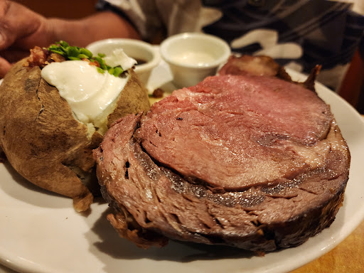 The food itself was good. The steak and baked potato were excellent and highly recommended. The vegetarian option, however, was underwhelming—not very filling and quite overpriced for what it was. After I finished my meal, my partner was still eating. The waiter noticed I was done, promptly cleared my plate, and then stood at the table, waiting for my partner to finish his steak so he could take his plate as well. This made us feel rushed and uncomfortable, which is the last thing one expects in a restaurant.