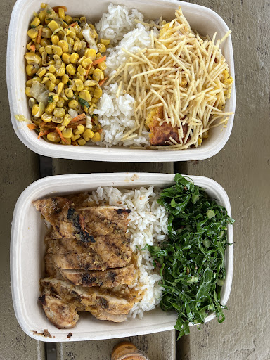 Enjoyed a Brazilian plate lunch on a rainy day at the picnic table surrounded by begging chickens. Don’t feed the chickens. The fricasse was the best thing we tried. I asked if I should try the chicken or the vegetarian. They recommended the chicken. The plate portion was bigger than expected which was appreciated. The sauce/salsa they gave packed some good heat that definitely helped punch up the flavor. Warning to people who don’t know the difference between Brazilian collard greens and midwestern collard greens. My boyfriend forgot and took him a moment to remember what we had when we actually visited Brazil. Some might be disappointed as it is be eddy butter if you’re not expecting it.