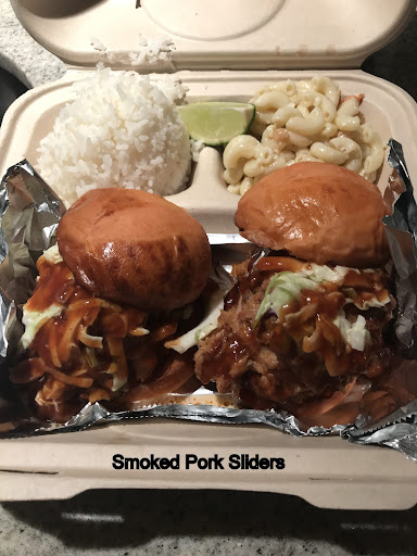 Read moreStopped here last night on a whim and because the aroma was so good. What a great find! The smoked pork sliders were amazing - so tender and delicious. The meat was smokey and the barbecue sauce tangy without drowning the pork. The mac salad was also pretty extraordinary too, not slathered in mayo but made with fresh herbs, nuts and lime. I could have made a meal of the mac salad, it was that good. I was really impressed with the care taken to pack my take away box and make the food look as appealing as on a restaurant plate. Great counter service too -very friendly. We got to chatting and the guy at the counter talked about how he makes his seared ahi tacos plus how he'd worked months to perfect his fried calamari recipe. We are going back tonight to try those. This place is open late too which is a real plus. I couldn't have asked for a better late night dinner.