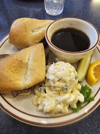 We ordered the Conquest sandwich, which includes roast beef, grilled onions, cheese, and sauce, and the French dip as well. While waiting, we appreciated a timely refill of our water. Our food was served in just 10 minutes, a pleasantly quick service. Both the au jus sauce and the French dip were outstanding. The Conquest sandwich was impressively large, packed with tender, well-seasoned meat. We would definitely order both...