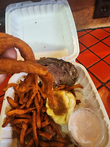 I had the prime rib and my friend had the only burger on the menu. There obviously isn't a chef, just a cook. The prime rib was frozen, terribly tough, poor flavor. It was supposed to be served with a pop over (standard side for prime rib). When my meal was FINALLY served, after waiting one hour with the restaurant at 1/4 capacity) it was room temperature. And there was no pop over. When I asked Desmond, our lackadaisical server, where it was, he replied "in the oven". He then left for a few minutes and returned with two dinner rolls. I inquired about the pop over, he just said that this was all there is. Then I had to ask for butter, which he brought back frozen, 2 very small containers. Unspreadable. The horseradish sauce was inedible. Whereas prime rib should be served with horseradish sauce prepared from freshly whipped, unsweetened whipped cream mixed with freshly grated horseradish, what was served was a bottled sauce with very little flavor. Then the prime rib itself was very chewy and tough, with large amounts of globby fat. Thus demonstrating that the meat was frozen and heated, not cooked by a chef. If you cannot or will not prepare prime rib properly, please remove it from the menu.