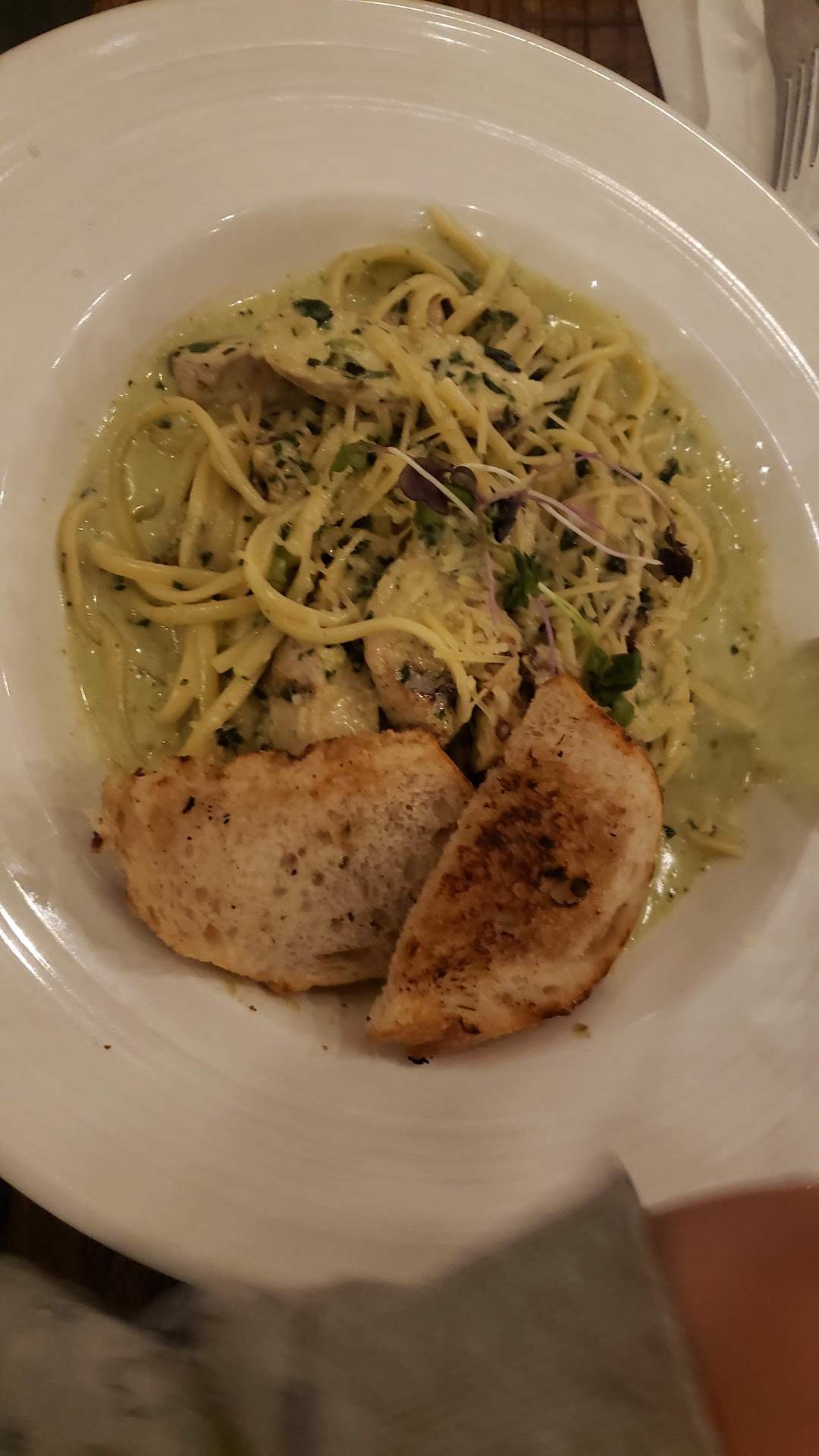 We were getting a very unwelcome vibe from our server and decided to pivot from ordering a more elaborate meal to the assortment of flatbread pizzas. These were solid with a nice amount of toppings with good flavor combinations (hot chicken and spinach feta and artichoke) though there was no feta to be found on that flatbread. Honestly though the hot chicken with its Gorgonzola was quite nice.