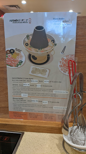 Old review: $28.99 AYCE for dinner, $19.99 for lunch 11am-3pm. It's BYOB cause they don't serve alcohol. The AYCE comes with 2 soft drinks, 50% off appetizers, most of the protein and everything in the fridge. The soup base can be individual pots or 1 pot all together. I ordered hot and spicy soup base and it came out looking like they just put chilly pepper in hot water. It looked very very plain. There's a lot of selections in the fridge so that was a plus. There were 3 servers working that night and 2 of them barely speak English. Communication was kind of hard. Other than that, everything was okay....