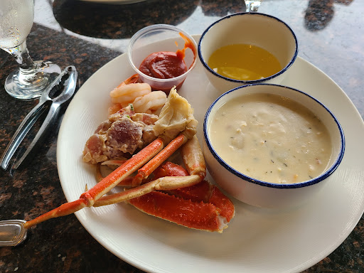 My wife and I went here for the seafood and prime rib dinner buffet on a Saturday night. They only do the buffet on Friday and Saturday nights so if you're looking for this, be aware of that. The food was good but not great. When I heard it was a seafood buffet I assumed there would be a lot more fish to choose from. There was only one type of fish available and it was a little bland. There was all you can eat crab and tempura shrimp and both of those were quite good. The salad/fruit selection was not very impressive. Most of the buffet portion was different salads that didn't look very tempting to me. The prime rib was quite good. I really enjoyed that. There was a large selection of desserts and I really enjoyed most of them. For an all you can eat buffet that includes prime rib, the 45 dollar price (per person) was not bad. The service was definitely lacking for us. We were seated outside but it soon started raining and we had to be moved inside. Inside or outside, we had no idea who our waiter was most of the night. Since it was a buffet we made do pretty well without one but we definitely felt neglected and unsure who to ask for things the entire meal. All in all, it was a pretty good dinner. I'm a bit on the fence on whether I would go back. It definitely lacked the flavors and the variety (and the service) that I expected but it's not a bad value for the amount of...