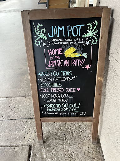 I was interested to try Jam Pot because they advertise vegan options. My visit yesterday around 2 pm presented a few challenges. While I appreciate their effort to cater to vegan customers, the availability of options was limited. I had hoped for a vegan sandwich or patty, but unfortunately, most items, including the vegan ice cream, were out of stock. The service began a little slowly. The person at the counter was friendly, but there was a noticeable delay before I was acknowledged, as he was engaged in an extended conversation with the customer ahead of me. For a primarily take-out spot, perhaps a brief acknowledgement of other waiting customers could enhance the overall experience. I opted for the only available vegan choice, the jerk jackfruit wrap. While I commend them for offering this, the wrap itself was somewhat disappointing. The filling consisted of a very small amount of jackfruit and seemed to lack fresh vegetables. The dominant flavor was an intensely spicy sauce that unfortunately overpowered the other elements and wasn't very enjoyable, even for someone who typically appreciates spice. The wrap itself seemed to be a standard, pre-made variety. The price of the wrap also felt a bit high, even considering the general price level on the Big Island, which added to my overall feeling of disappointment. I do hope this feedback is taken constructively, as I appreciate businesses that strive to offer vegan choices. For those specifically seeking a wider variety of vegan options in the area, the lunch counter across the street at the health food grocery might be worth...