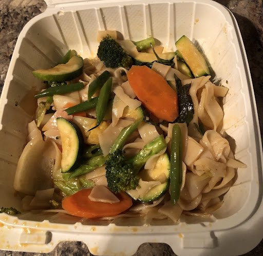 This is my favorite Thai place in Captain Cook, my neighborhood, and is better than any in Kailua-Kona except Thai Rin. The vegatables are fresh and always crispy in every dish I've had. Prices are good. Photo shown is half of an order of Kee Mow rice noodle with vegetables. I was so hungry I forgot to take the picture:) For addinng shrimp at $2, I got 5 shrimps. I am always pleased with her (the owner's) cooking. My other favorite is Tom Kar soup. The coconut cream she uses is very rich and creamy. It is a take-out place wtih some tables outside in the courtyard of Kealakekua...