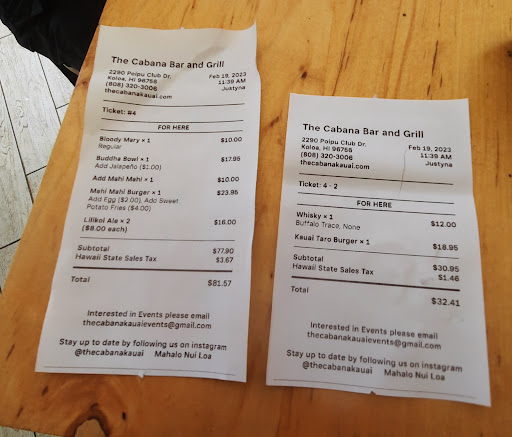 My wife got the Kalapaki Tacos with Kalua Pork. Those were straight up gross. I won't sugarcoat it at all. By the description, they consist of "Two tacos. Served on a cheese crusted tortilla w/ shaved cabbage, pico de gallo & tomatillo cream sauce".. That description fails to mention the meat and cabbage are all tossed together.. It becomes a mush mess of soggy cabbage that ruins the taste of the meat. She ate 2 bites and was done. Waste of money, big time.