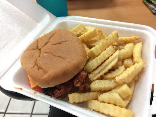 Read moreSure wasn’t bad! My friends and I stopped in as we did our laundry in the same shopping center. I ordered the bacon cheeseburger combo, it hit the spot for sure. My friends got the mahi-mahi, a gravy burger, and garlic shrimp. They all loved their meals! The only complaint we ALL had was that all our meals were served in styrofoam. That’s terrible for Mother Earth. We ate in the dining room, could our meals have been served on plates?? I say yes. It was a great burger though. It was fun listening to the man who took our order shout in a microphone to a person directly in front of him.