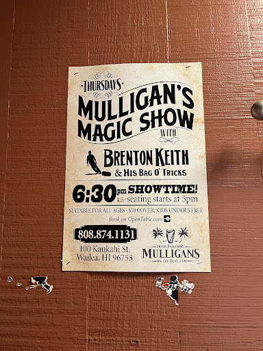 I wanted to extend my sincerest thanks Michael O’Dwyer and the entire staff at Mulligan’s on the Blue located at 100 Kaukahi, St. in Wailea/Kihei, Maui. If you are looking for a family-run business great for families, couples and individuals alike, that serves especially tasty food and cold drinks with entertainment, against the backdrop of historical Irish flair, beautiful palm trees and the picturesque Maui sunset—Mulligan’s on the Blue is the place to go.
