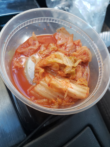 I ordered a side ok kim chee with my meal and this is what I got. I sat down and took a few bites of my meal and just couldn't agree with the portion of Kim chee so I took it back to the lady and asked fir a refund. I told her the order portion is too small and she said no refund. She said that I ate some of it. I told her that I didn't. She conversed with another lady and they were saying whatever in their language then again she told me no, no refund. I asked her once again for my money back then she said she would put more. She was clearly upset! lol She is often a little sassy but I always look past it. This is what my original side order of Kim chee was. I should've just showed the owner as I was having my meal on the table next to him. He is ALWAYS so kind and appreciative. He even asked me if I'd like some iced water after I started eating. Such a wonderful business owner! Food was on...