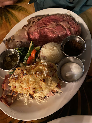 I had made reservations for Monday evening. We arrived and had zero wait. The host was pleasant. Water was brought and the waiter arrived almost immediately after. We ordered the Mai Tai special. The drinks came very quickly, and they were DELICIOUS. The waiter showed us photos of the specials on his phone. My wife ordered the NY Steak (🤔 why are they no longer called "NY Strip" anymore?) medium well, garlic mashed potatoes, steamed veg and garden salad. The waiter pushed a "Papaya vinegrette" dressing, but she asked for ranch dressing. I ordered the Seafood Linguine with vodka sauce and the soup de jour, "Tahitian Clam". It was only a few minutes before the salad and soup arrived. The soup was very nice, not overpowering taste of clams. My wife was several bites into her salad before she realized it didn't have ranch dressing, but was in fact the Papaya vinegrette. Luckily she isn't allergic. She accepted the apparent error with good nature. A few minutes after we finished the soup and salad, the entrees arrived. My linguini was a decent size portion, with a good amount of fish, clams, scallops, and shrimp in it, but a bit sparse for the price. My wife's plate could have come from a magazine shoot. The steak was a thing of beauty. I know I could never grill one so pretty. She cut into it and it was cooked perfectly! Then she had a bite. It was beef. But other than that it had no flavor. It was grilled with no salt, no garlic, no pepper. It is very surprising how much just a little salt can change the flavor of meat. I suggested she send it back, or we get a salt shaker (the waiter had left us a pepper mill, but no salt). She said no and tried a few more bites, but she just couldn't enjoy the steak. She flagged a waiter over and asked for some A1. For a $40+ steak. While waiting for that, she tried the garlic mashed potatoes. They weren't. They had no garlic, no salt, no flavor. She then tried the veg. Steamed and very pretty but again, no flavor. No salt, no butter, no pepper. Bland. Meanwhile, I thoroughly enjoyed my Seafood Linguine. Which made me feel just a bit guilty. The two of us plus tip was well over $100. It was supposed to be a special dinner. It will be one we will remember, but one we will NOT be repeating.