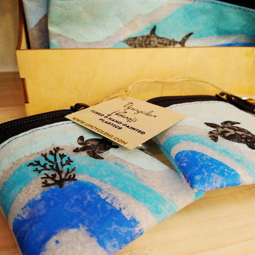 I am posting photos of a local crafter available here that blew my mind. They upcycle plastics and rubber to create useful trinkets. This wasn't the only eye catching work here, but I am a total sucker for someone who diverts material from landfills.